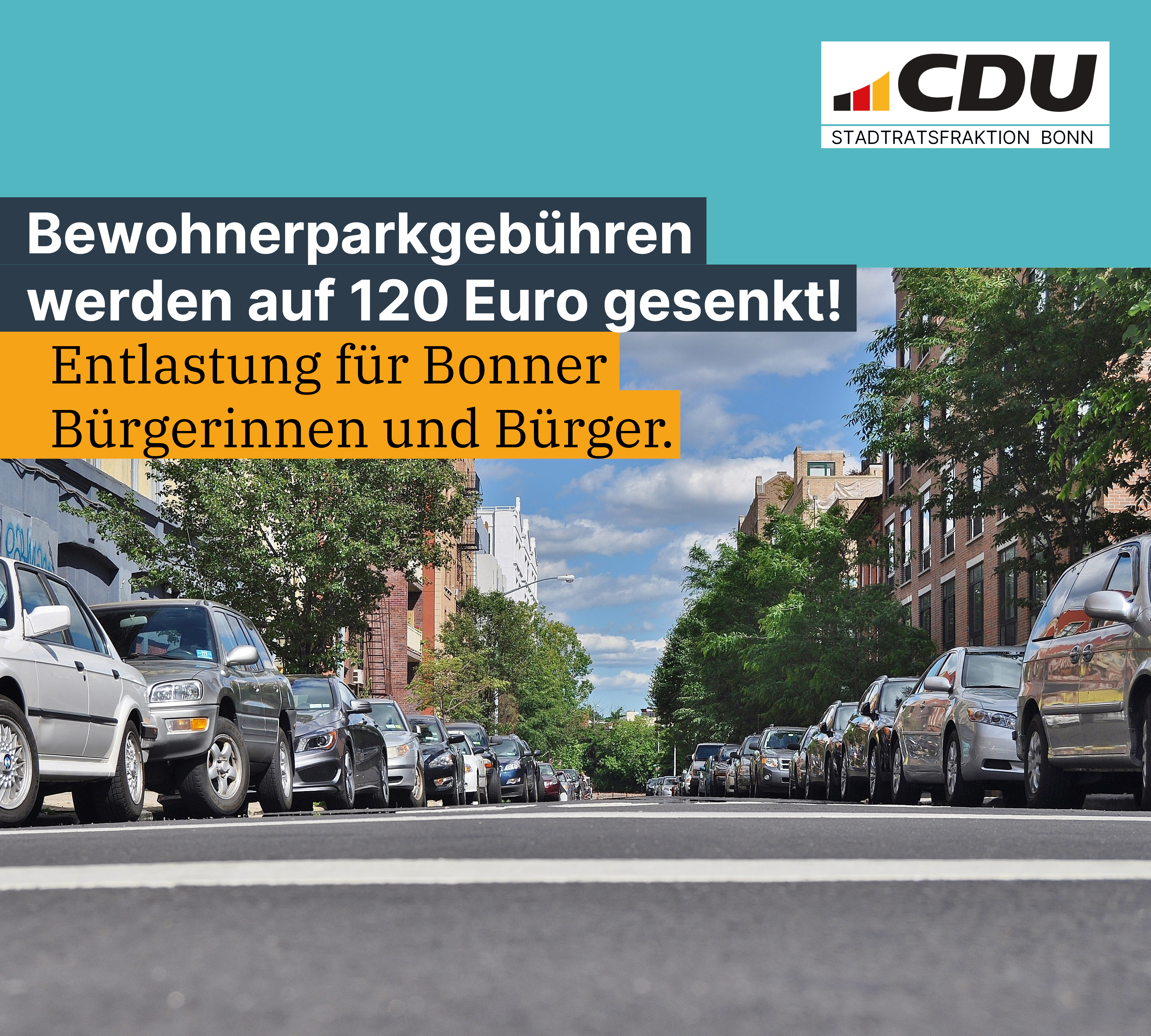Der Rat der Bundesstadt Bonn hat in seiner Sitzung am Donnerstag beschlossen, die Gebühren für Bewohnerparkausweise zu senken. Der entsprechende Antrag der Kooperation aus CDU, SPD und FDP wurde mehrheitlich angenommen und setzt damit ein wichtiges Signal für eine ausgewogene und bürgernahe...
